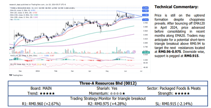 The report is for internal and private circulation only and shall not be reproduced either in part or otherwise without the prior written consent of Apex Securities Berhad. The opinions and information contained herein are based on available data believed to be reliable. It is not to be construed as an offer, invitation or solicitation to buy or sell the securities covered by this report.