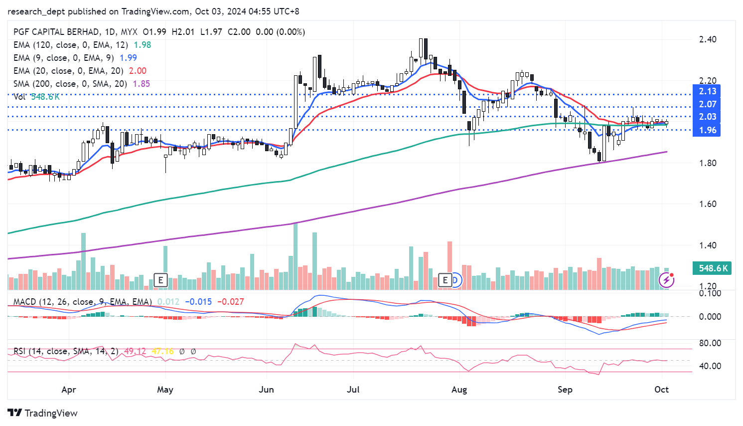 Price has staged a pullback in recent months before bouncing off SMA200. A mild recovery took place and price turned into a consolidation pattern. For now, traders may anticipate for a potential breakout above RM2.03 to target the next resistances located at RM2.07-2.13. Downside wise, support is pegged at RM1.96
