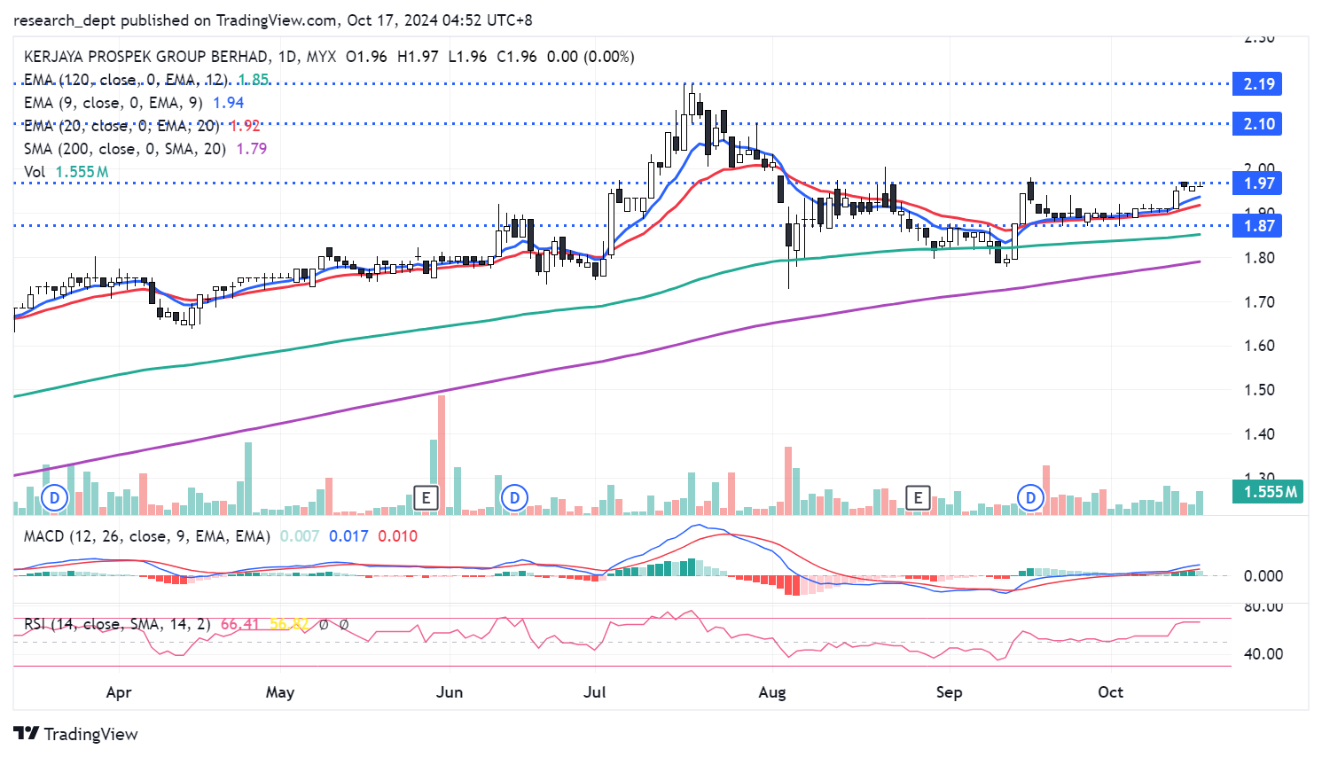 After bouncing off EMA120 twice in recent months, pr ice has turned into a consolidat ion pattern. With the recent recovery, the uptrend format ion was re-established. Traders may monitor for a potential breakout above RM1.97 to target the next resistances located at RM2.10- 2.19. Downside wise, support is envisaged at RM1.87.