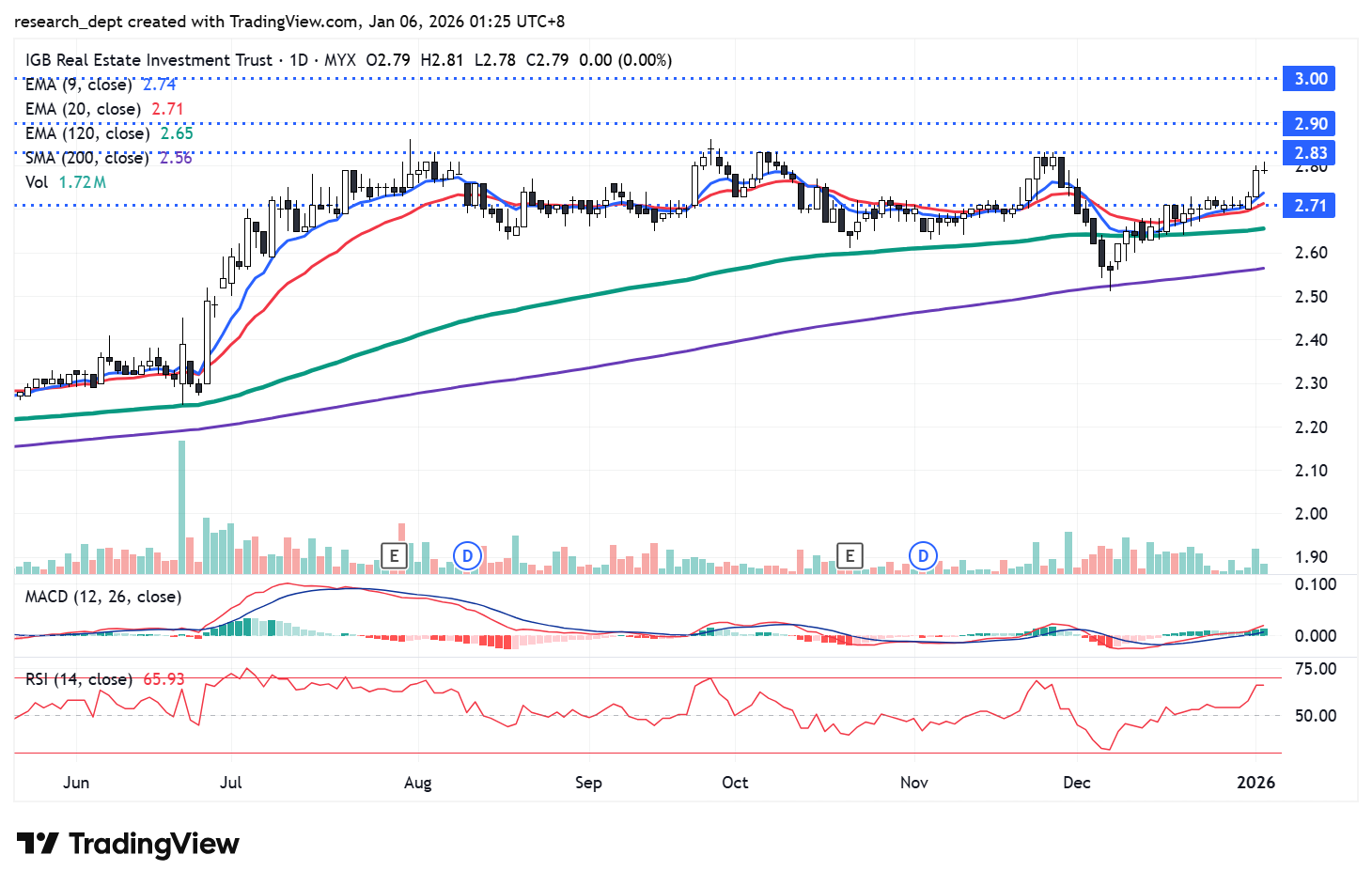 The stock gained momentum in Jul, breaking above its previous consolidation before entering another period of sideways starting from Aug. Price action has been moderately volatile. It is currently testing resistance at RM2.83, a level that has repeatedly capped gains. A breakout above this level could pave the way toward the next resistance levels at RM2.90 and RM3.00. On the downside, immediate support is located at RM2.71.