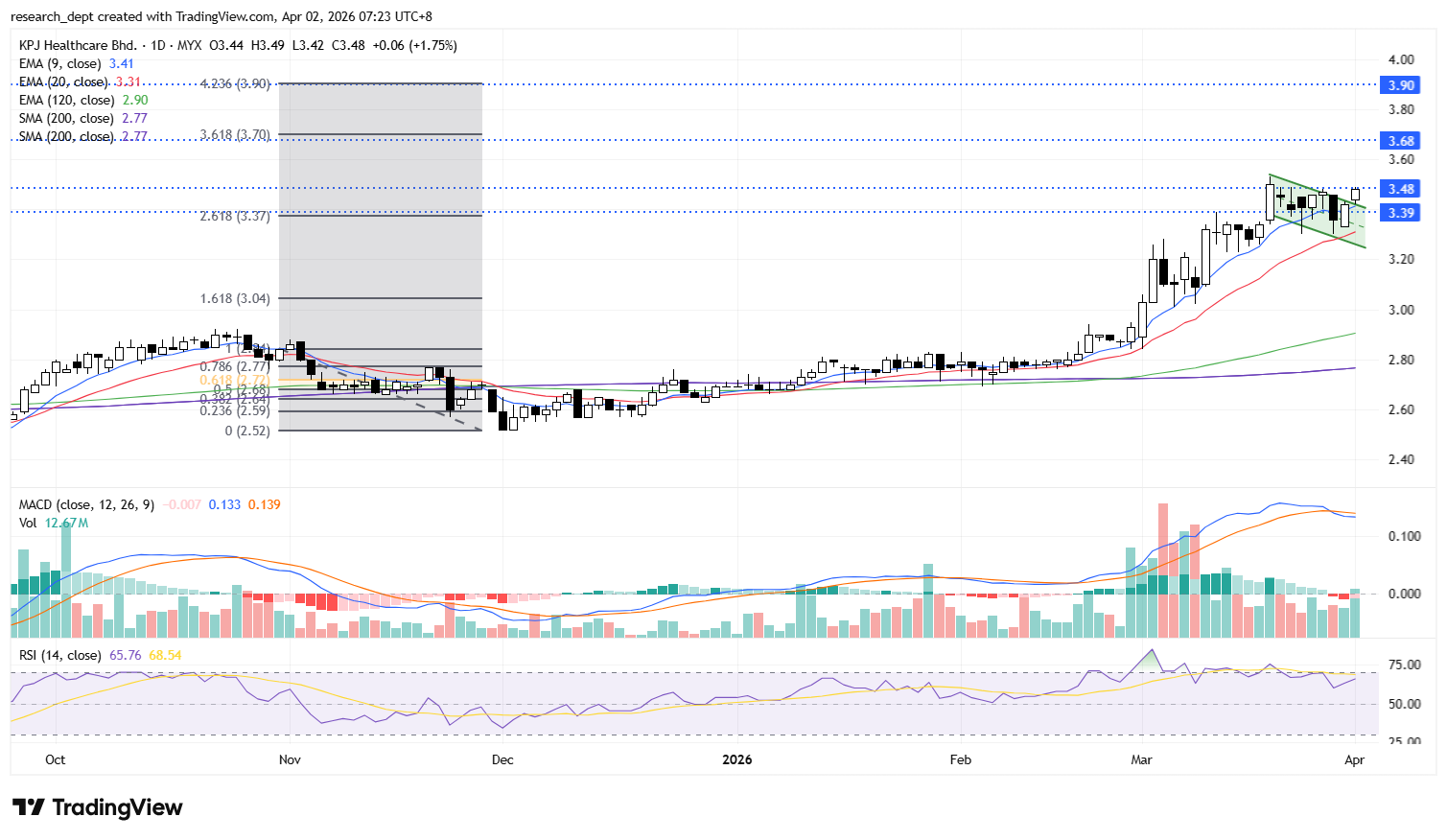 Prices may advance towards RM3.90, with the next resistance at RM4.10, while RM3.29 serves as support.