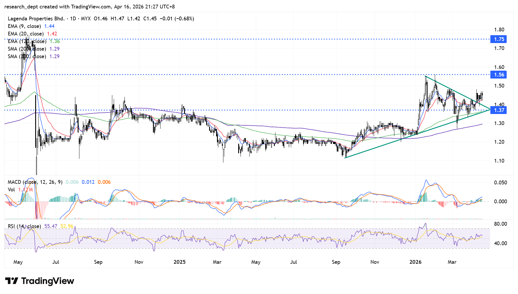 We expect prices to rise towards RM1.56, followed by RM1.75, while the stop-loss is set at RM1.37.