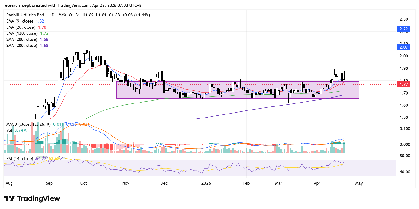 Upside targets are RM2.07 and RM2.22, while the stop-loss is set at RM1.77.
